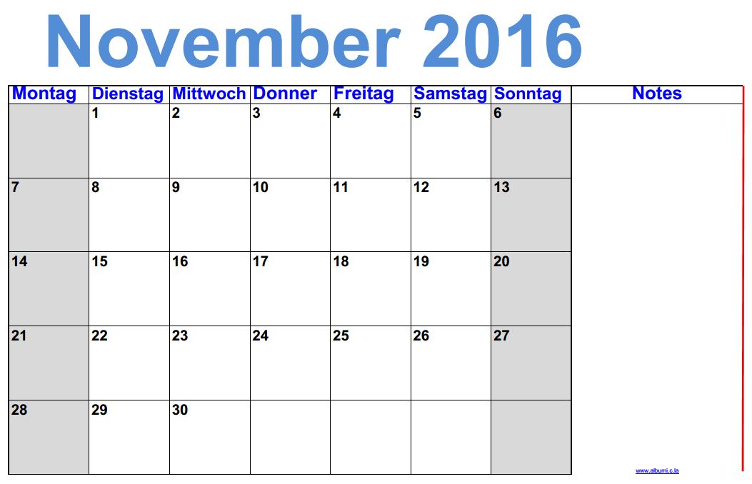 2020 2021 2019. Für einen anderen monat ein anderes jahr oder ein anderes land wählen sie bitte oben aus. 12 a4 seiten ganzer monat auf einer a4 seite wochentage horizontal sonntage in roter schrift inkl. November 2016 kalender monatskalender mit feiertagen kalenderwochen brückentagen verlängerte wochenenden.